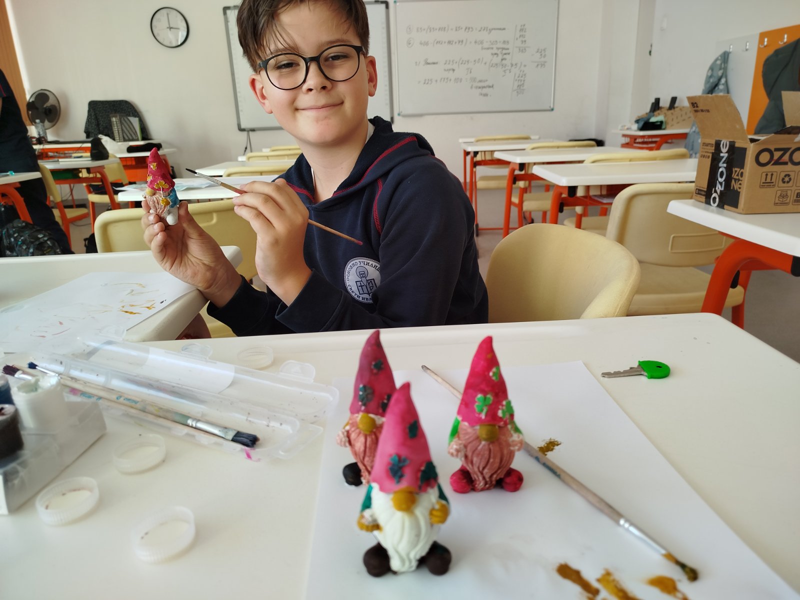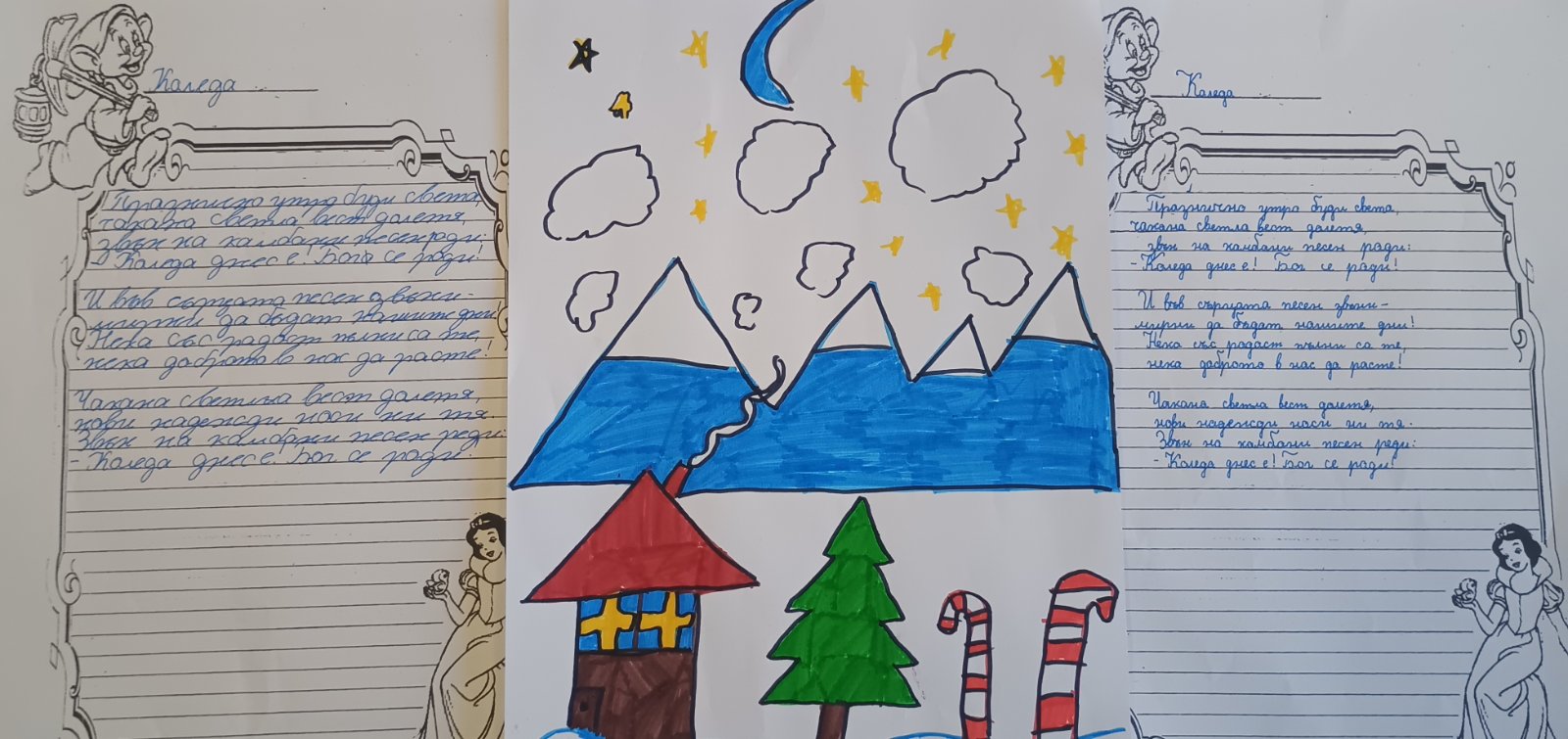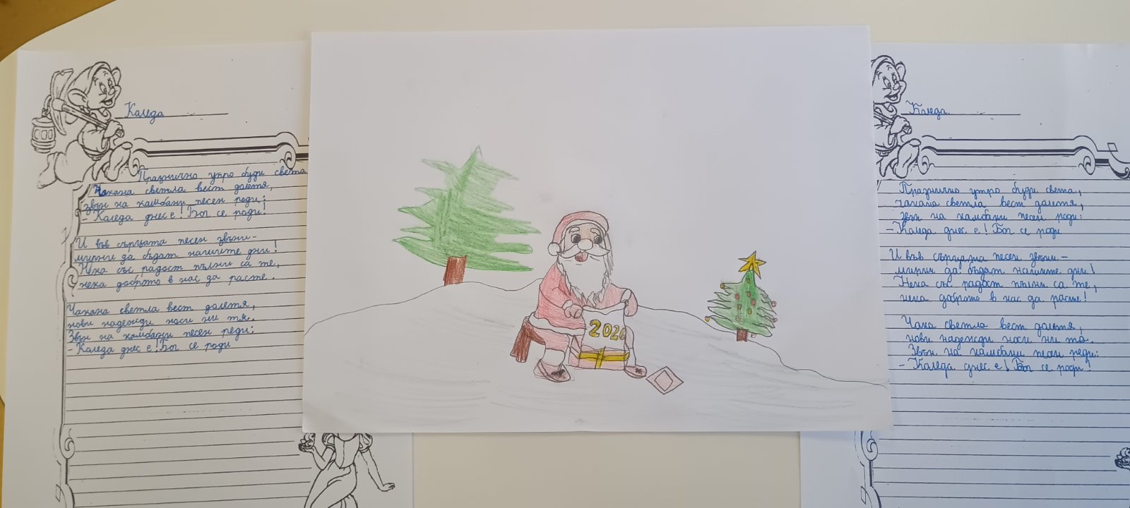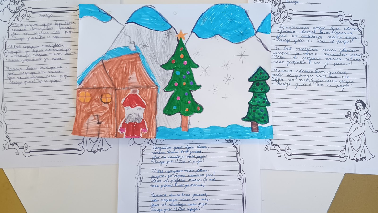 С изработените материали бе организирана изложба, чрез която третокласниците отправят своите благопожелания за здраве, щастие и доброта към всички за коледните и новогодишните празници.