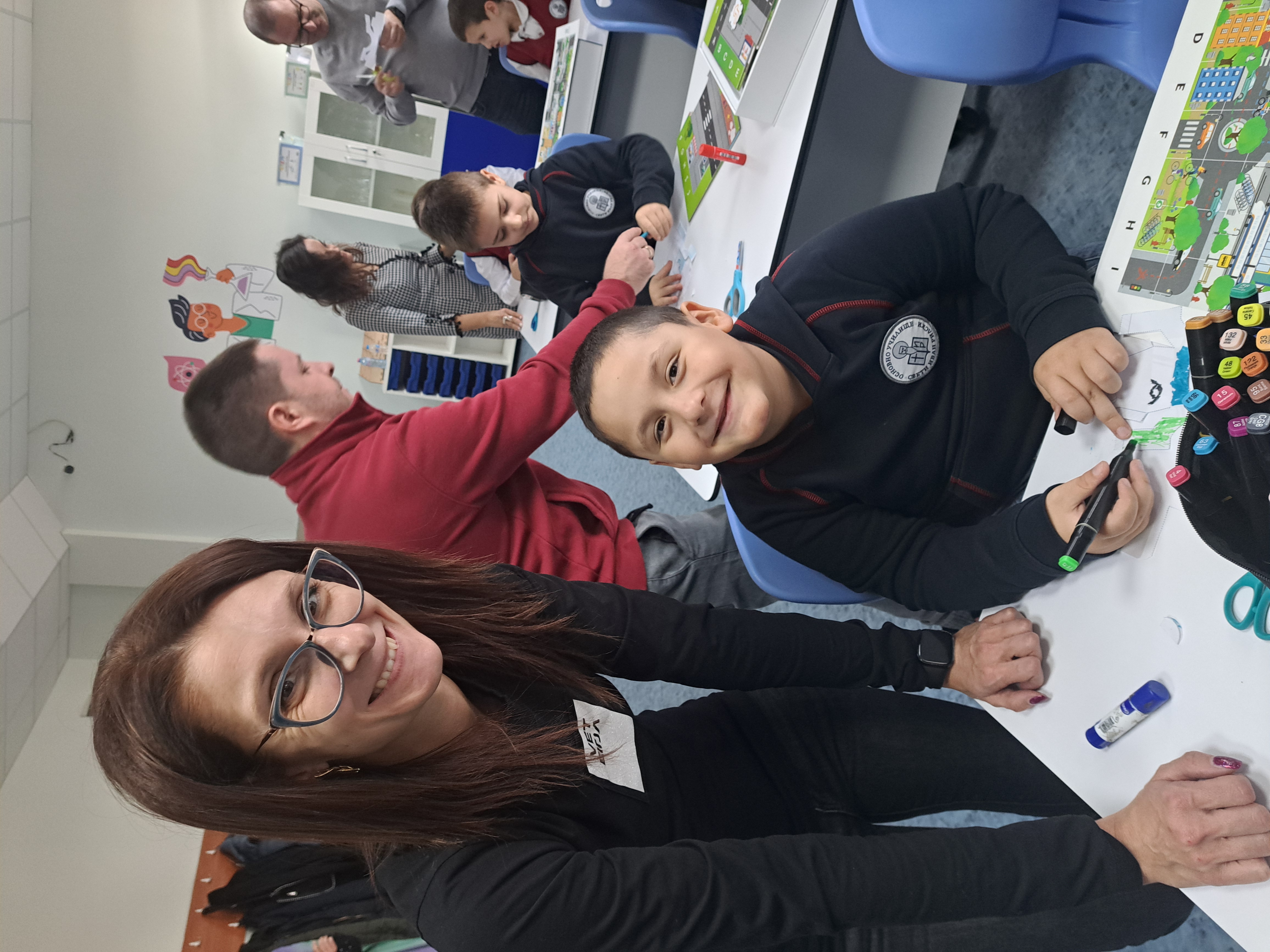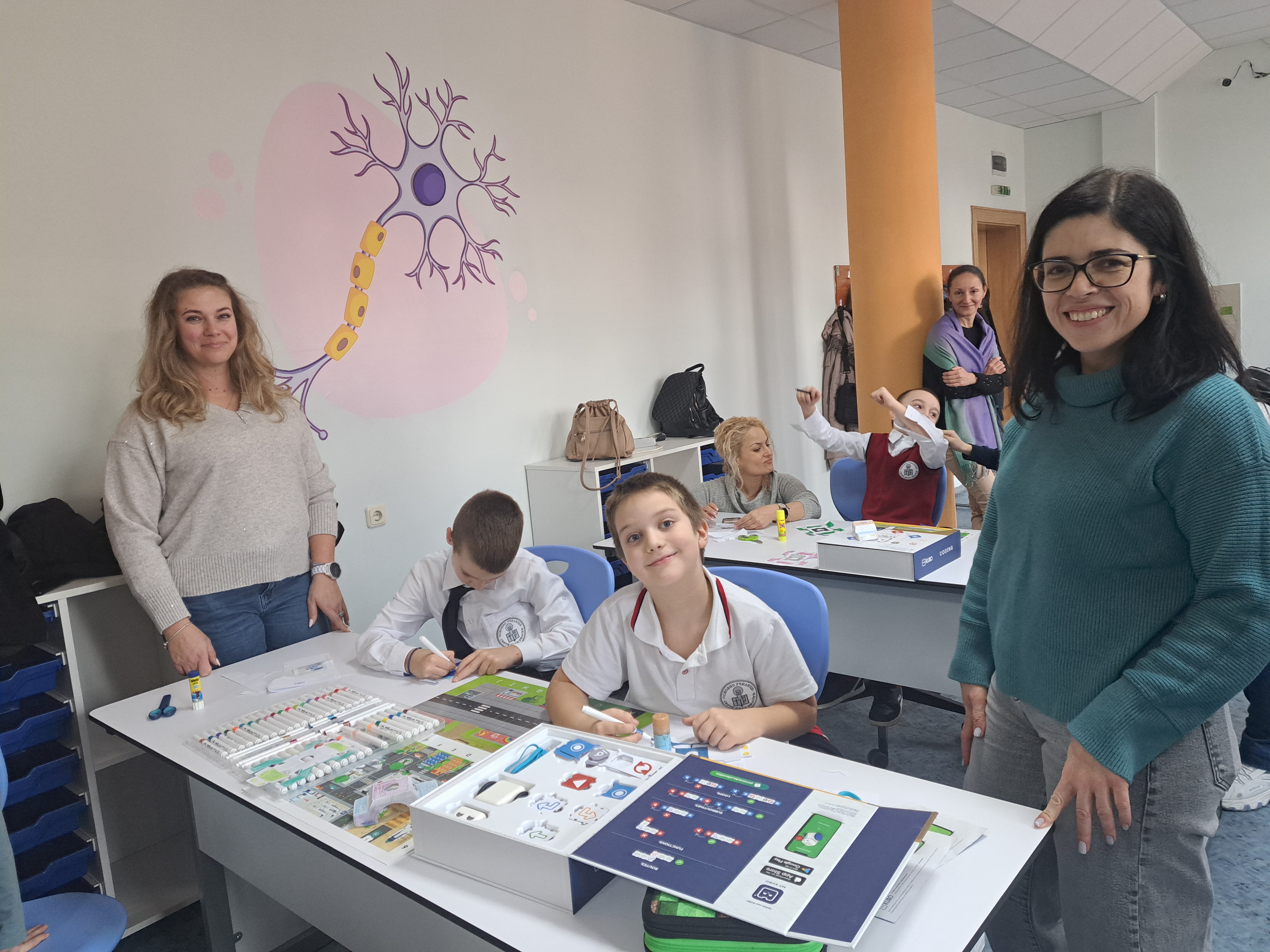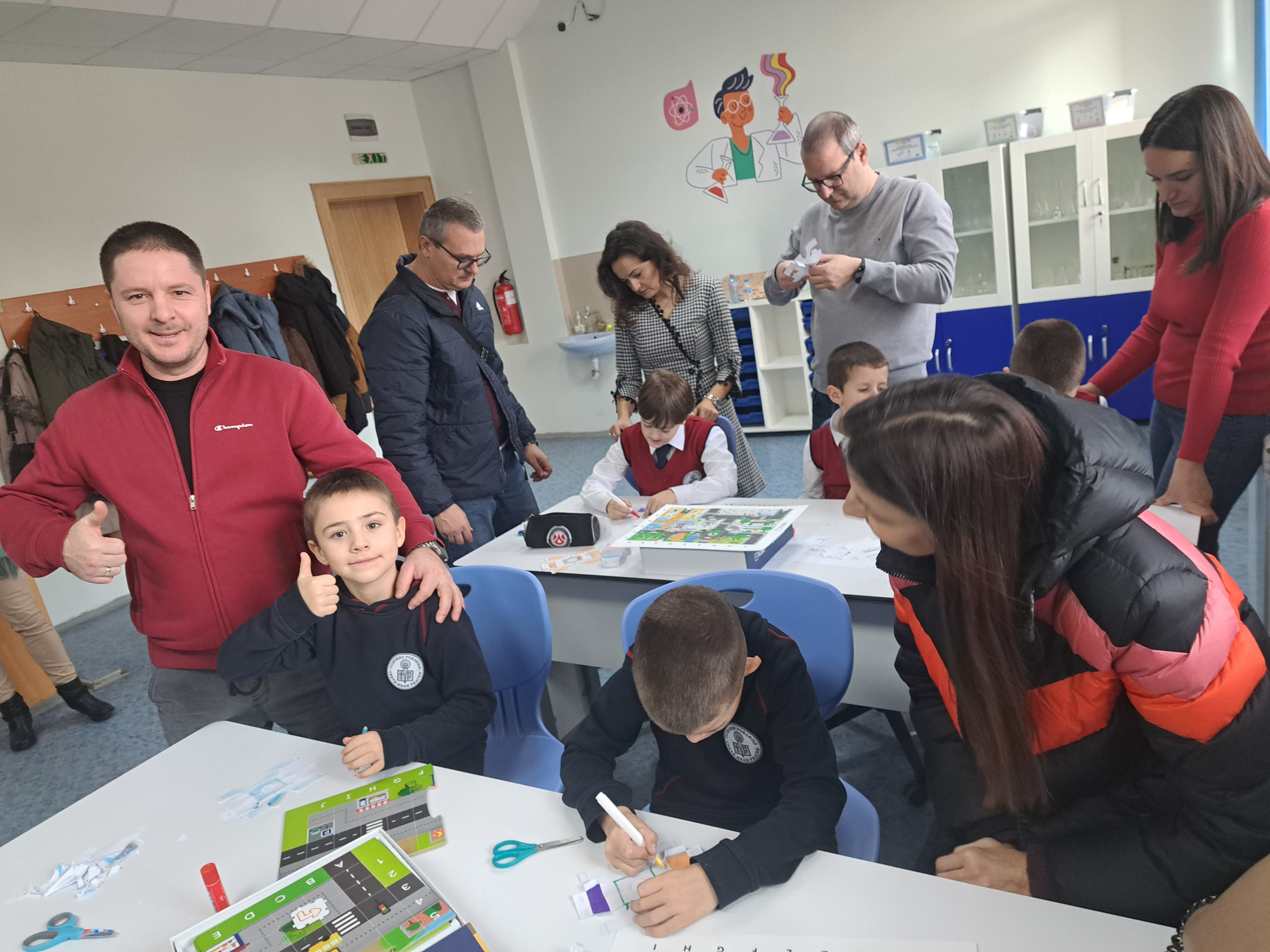 С много старание и прецизност, нашите най-малки ученици и техните родители изрязваха, оцветяваха, лепяха и написаха код, с който любимият робот да стигне до летището за коледното си пътешествие.