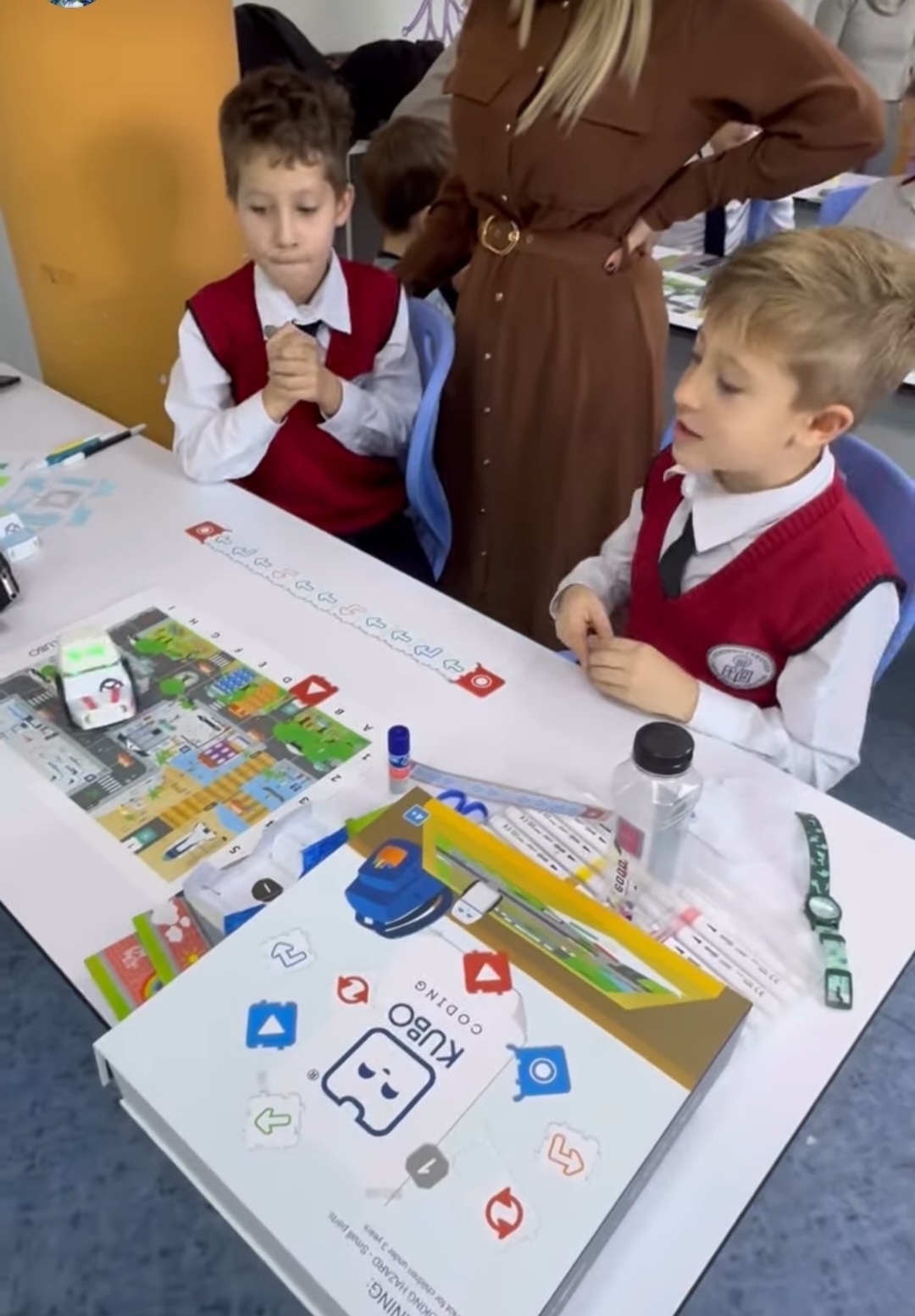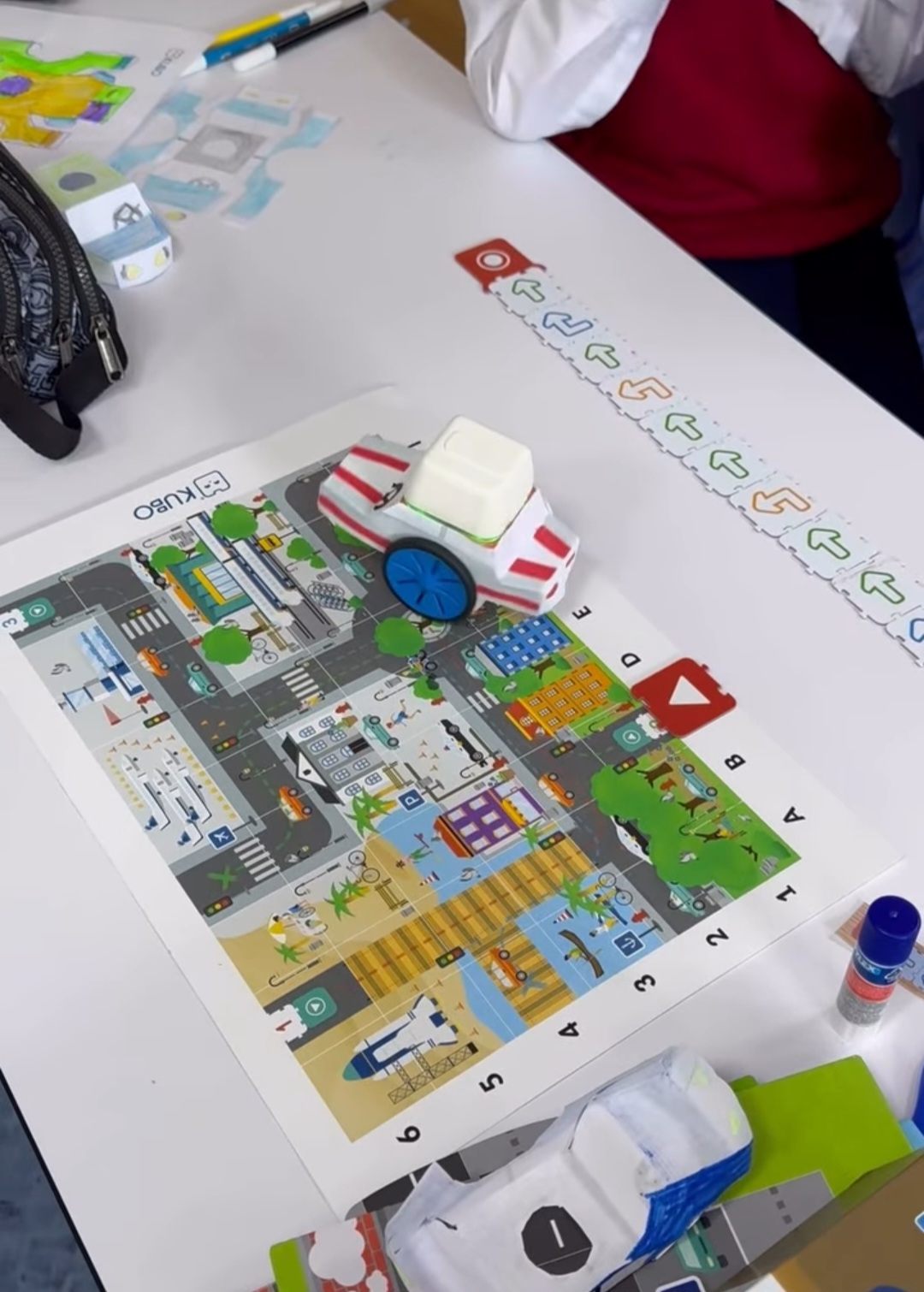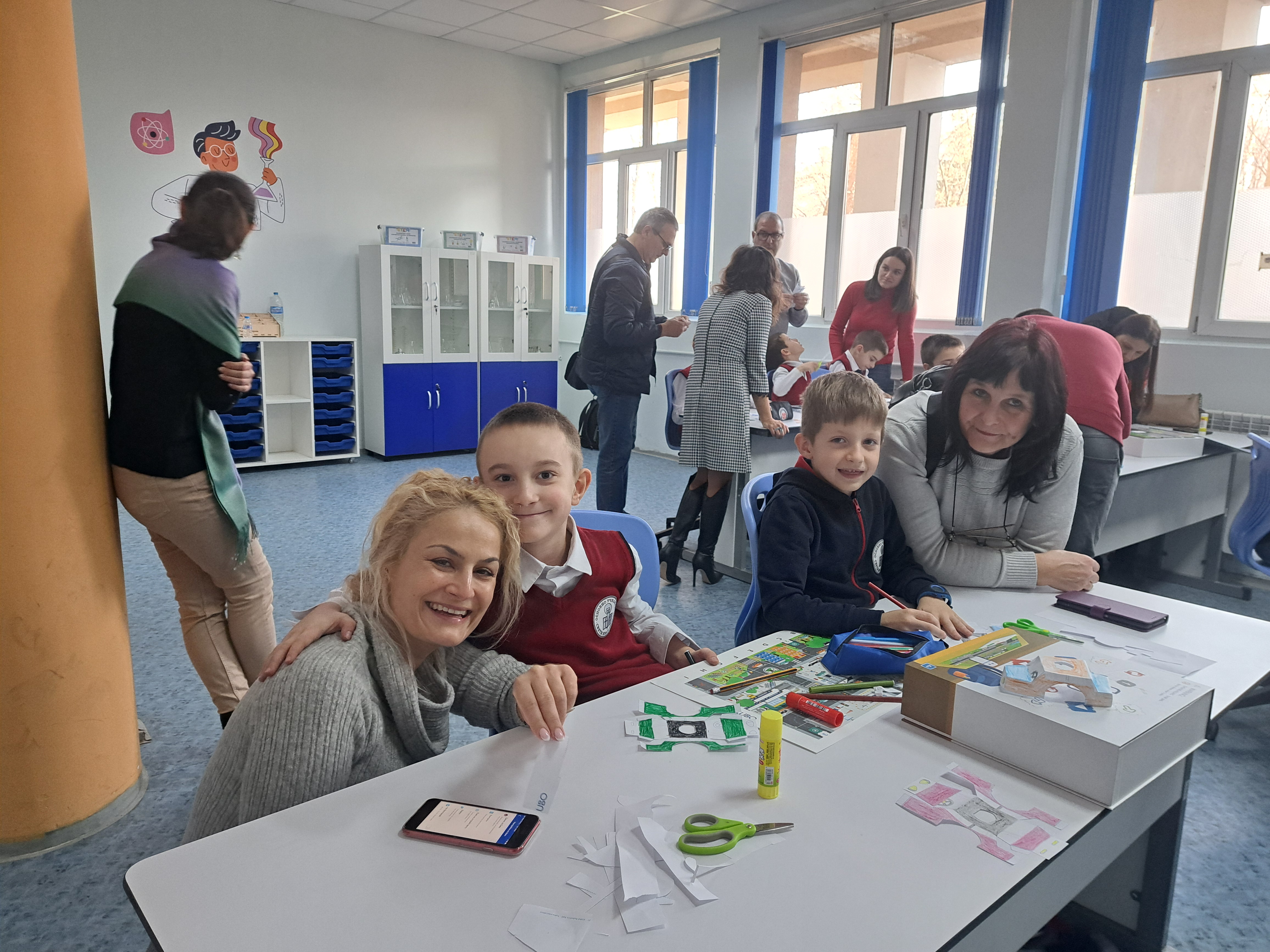 С много старание и прецизност, нашите най-малки ученици и техните родители изрязваха, оцветяваха, лепяха и написаха код, с който любимият робот да стигне до летището за коледното си пътешествие.