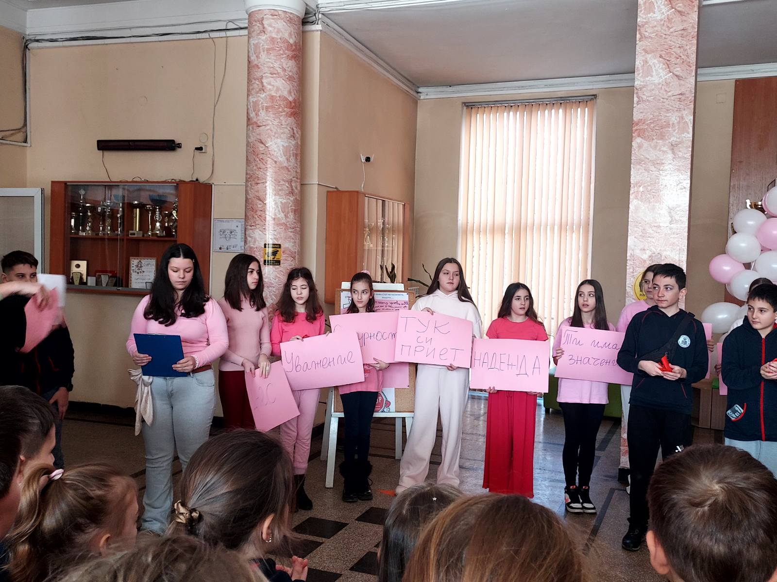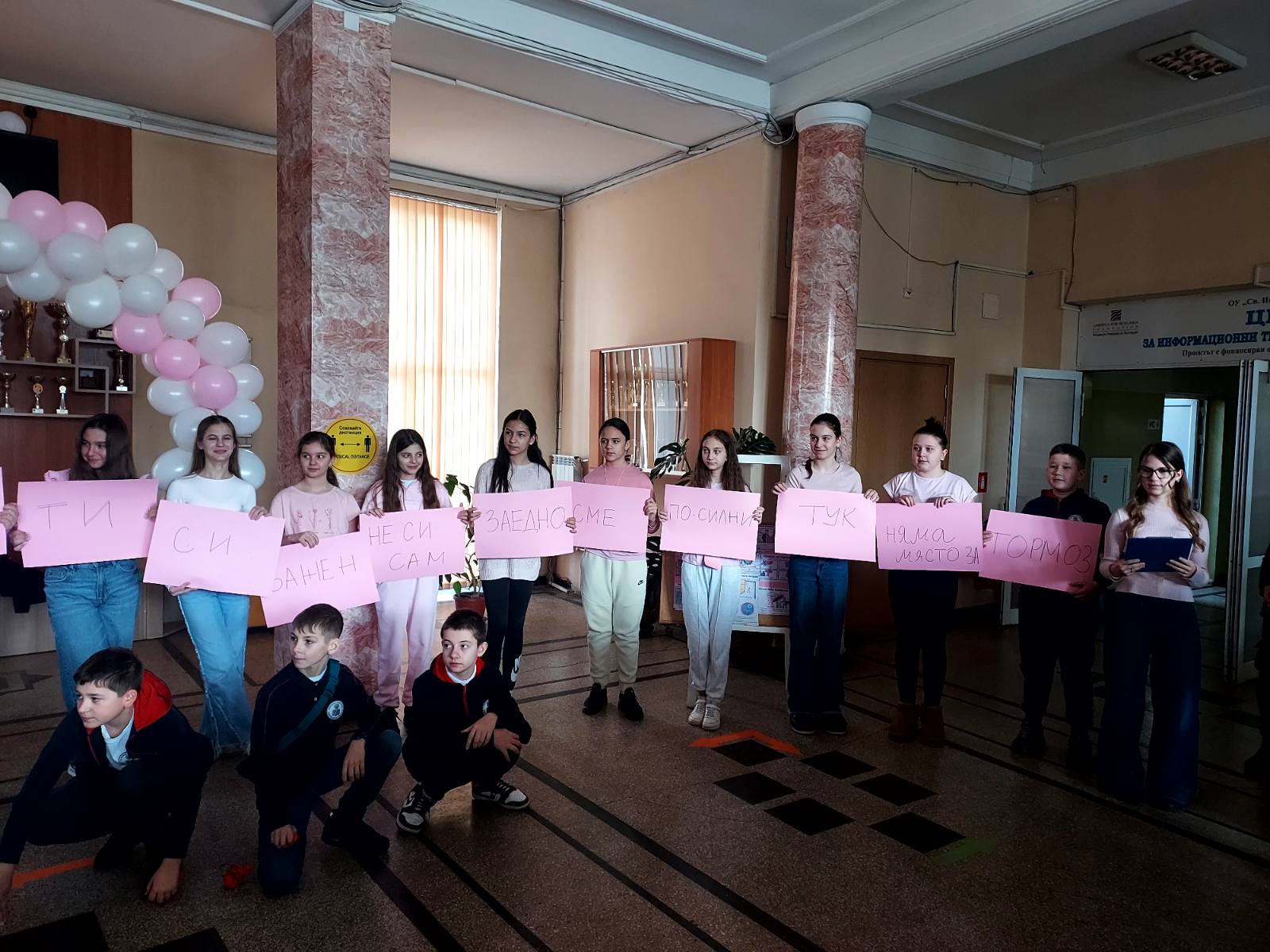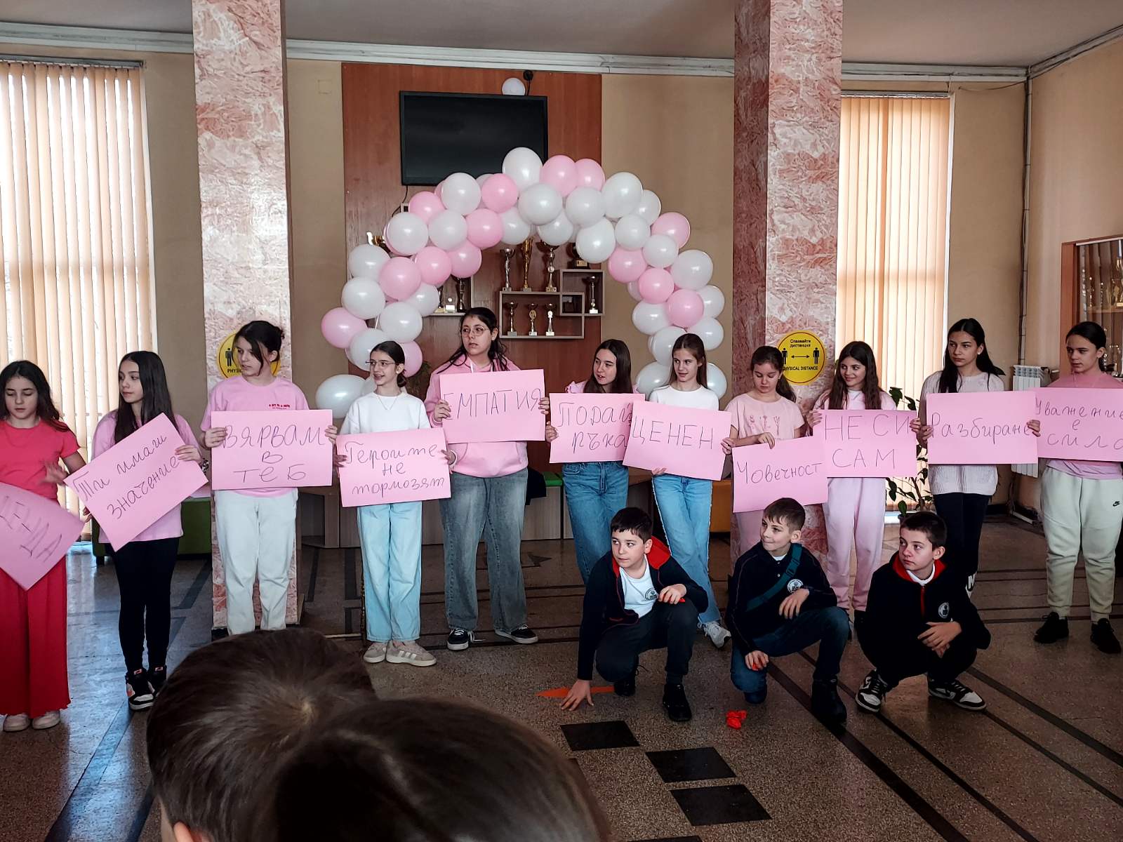 По повод Деня на розовата фланелка Ученическият съвет организира вдъхновяваща инициатива, с която ясно заяви своята позиция срещу тормоза в училище. Събитието обедини ученици от различни класове около една обща кауза – да изберем добротата и да бъдем активни в създаването на безопасна и подкрепяща училищна среда.