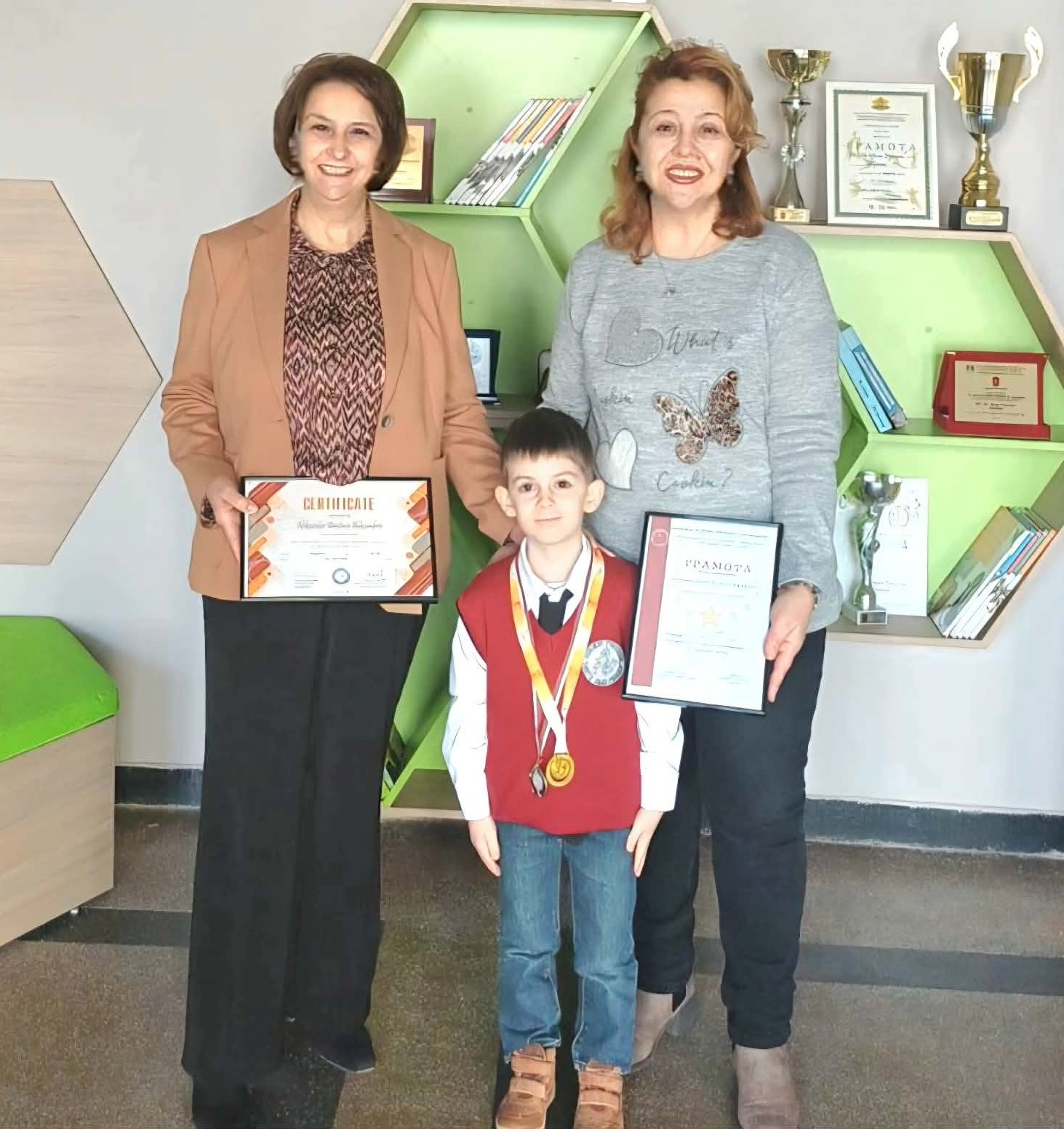 Ученикът Александър Александров от I „в“ клас доказа, че владее езика на успеха като завоюва сребърен медал от Коледното математическо състезание и златен медал от състезанието „Математика без граници“.